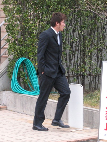 岡崎くんがサインをしに門の所まで来てくれました。