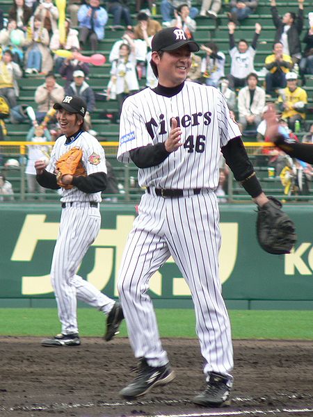 筒井壮選手の後ろでウイニングボール持ってる藤川投手が、何だか女の子っぽい。