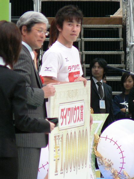 優勝旗はセリーグを代表して宮本選手が授与。